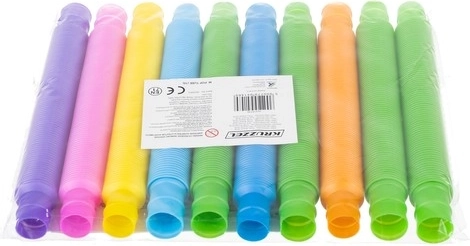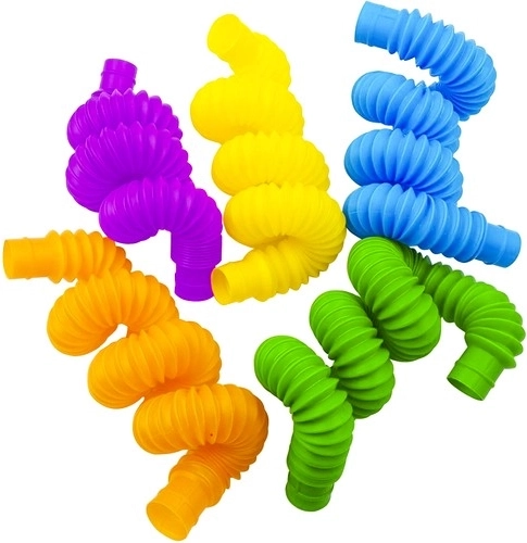 Aceste tuburi nu doar se conectează între ele, dar pot fi extinse iar plierea și deplierea lor emite un sunet plăcut. Acest lucru le face jucării perfecte pentru eliberarea tensiunii și dezvoltarea creativității ludice.