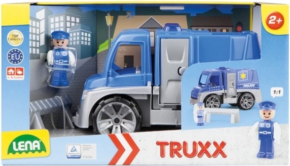 Descoperă camionul de poliție rezistent, care face față aventurilor din grădină și din camera copiilor. Datorită construcției solide și plasticului de calitate, este ideal pentru joaca de zi cu zi. Elemente realiste precum uși care se deschid și cabina rabatabilă stimulează imaginația și dezvoltarea motricității fine.