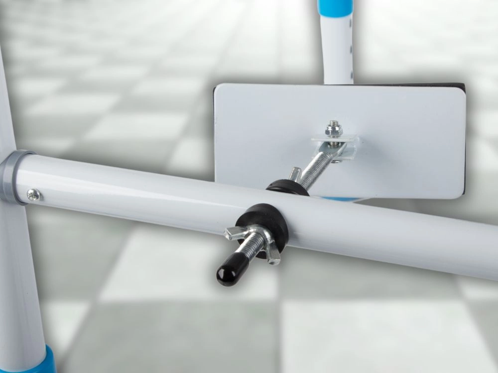 Cadrul metalic robust asigură rezistență și durabilitate. Mânerele antiderapante sporesc confortul, în timp ce picioarele stabilizează mânerul pe sol.