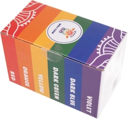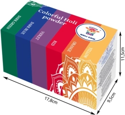 În pachet veți găsi șase nuanțe puternice: alb, portocaliu, galben, verde, albastru și mov. Setul este o alegere excelentă pentru festivalul Holi, petreceri tematice, teambuildinguri și acțiuni promoționale. Pulberea este lavabilă și se îndepărtează ușor de pe majoritatea textilelor.