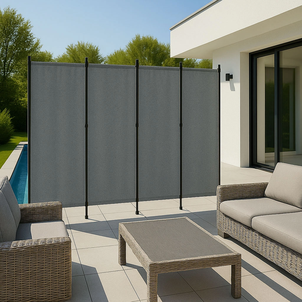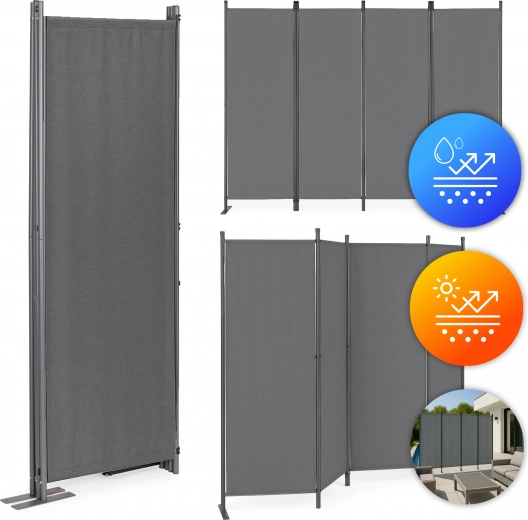 Paravanul de grădină pliabil universal MultiGarden este soluția ideală pentru protecția și decorarea spațiilor exterioare. Este perfect pentru grădini, terase sau balcoane, oferind intimitate și protecție împotriva vântului, servind totodată și ca separatoare de spațiu. Datorită țesăturii rezistente de poliester 160 g/m², paravanul este rezistent la radiații UV și ploaie. Datorită construcției ușoare și pliabile se poate muta și poziționa cu ușurință unde este necesar. Culoarea gri elegantă adaugă stil, făcând ecranul atât practic cât și estetic.