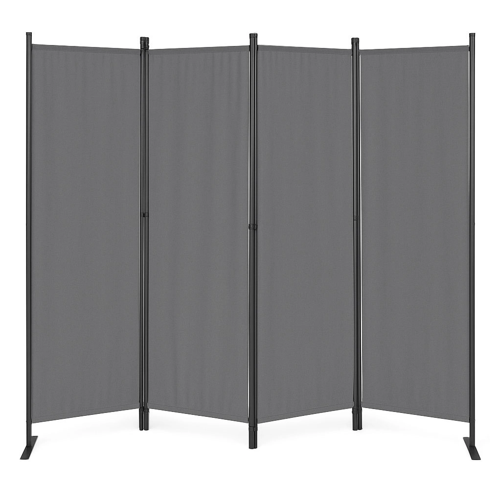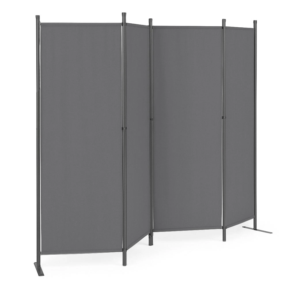 Îmbinările robuste ale panourilor facilitează plierea și despachetarea paravanului, ceea ce simplifică semnificativ utilizarea zilnică. Baza metalică stabilă cu găuri practice pentru ancorare oferă suport excelent întregii structuri, prevenind răsturnarea chiar și pe teren neuniform.