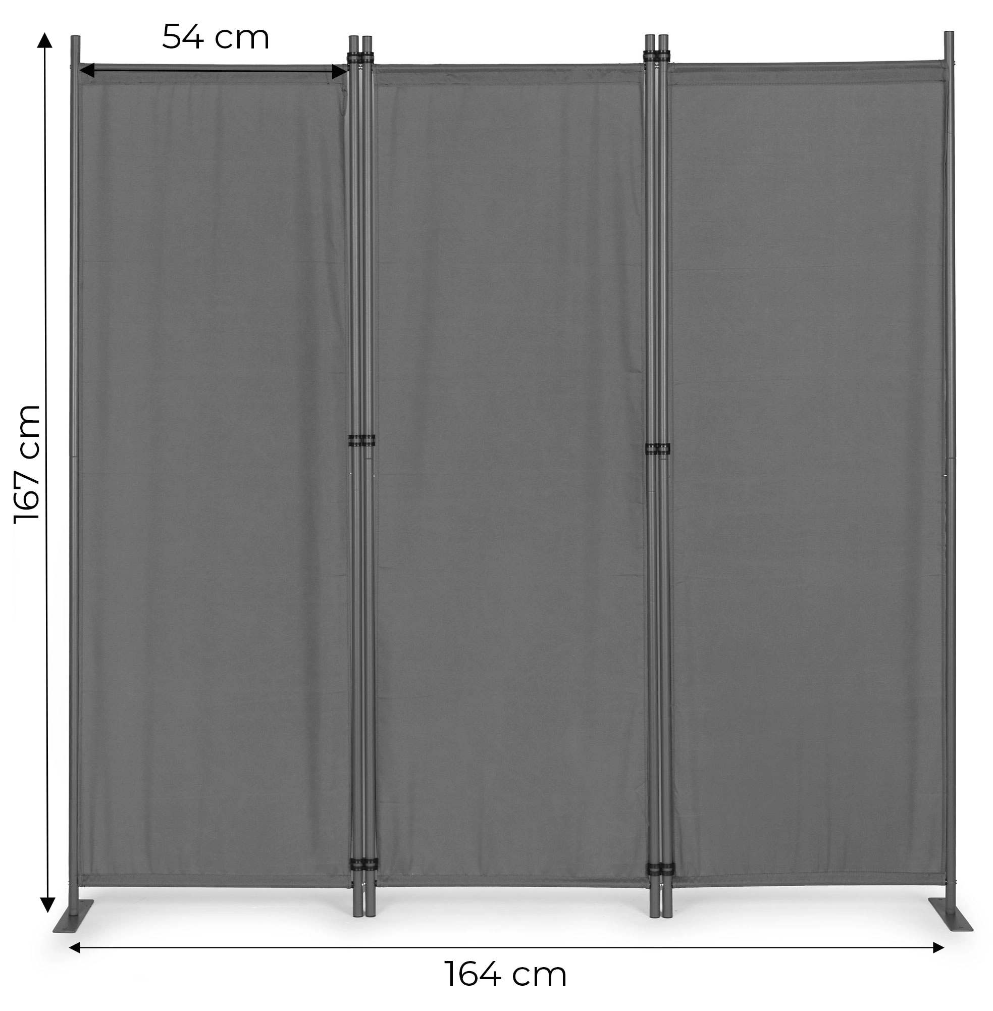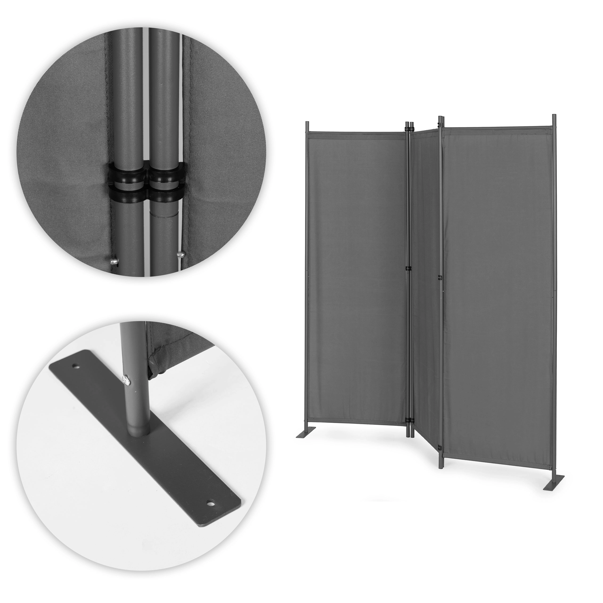 Conectorii solizi ai panourilor asigură o pliere și desfacere lină, facilitând utilizarea zilnică. Baza metalică stabilă este dotată cu găuri de montaj practice pentru fixare la sol, sporind stabilitatea și prevenind răsturnarea chiar și pe suprafețe neregulate.