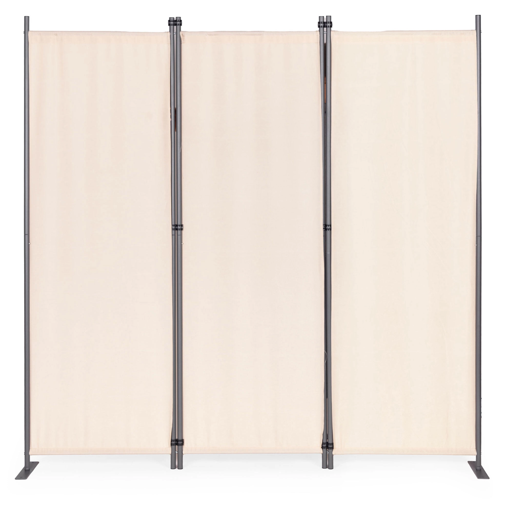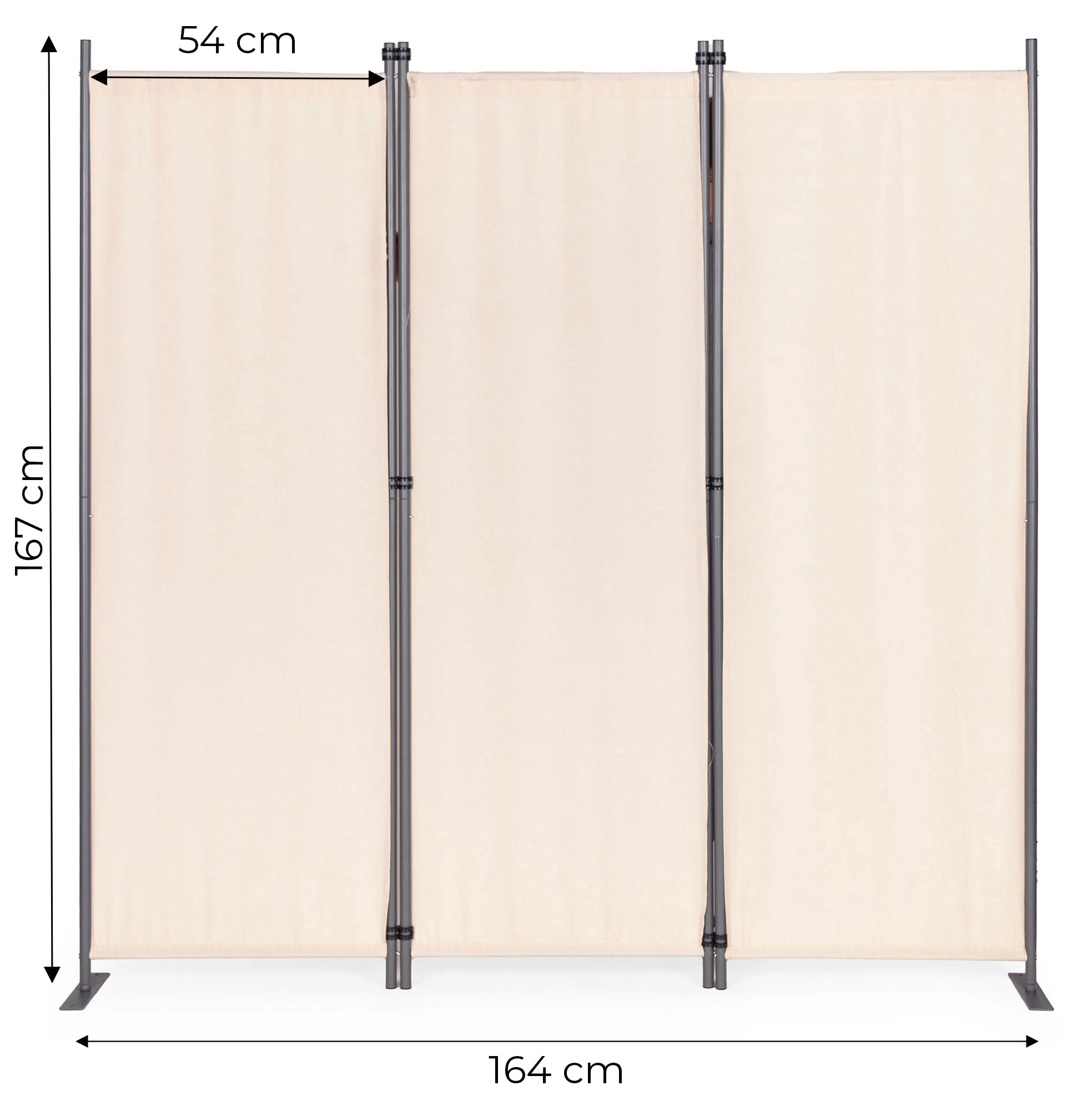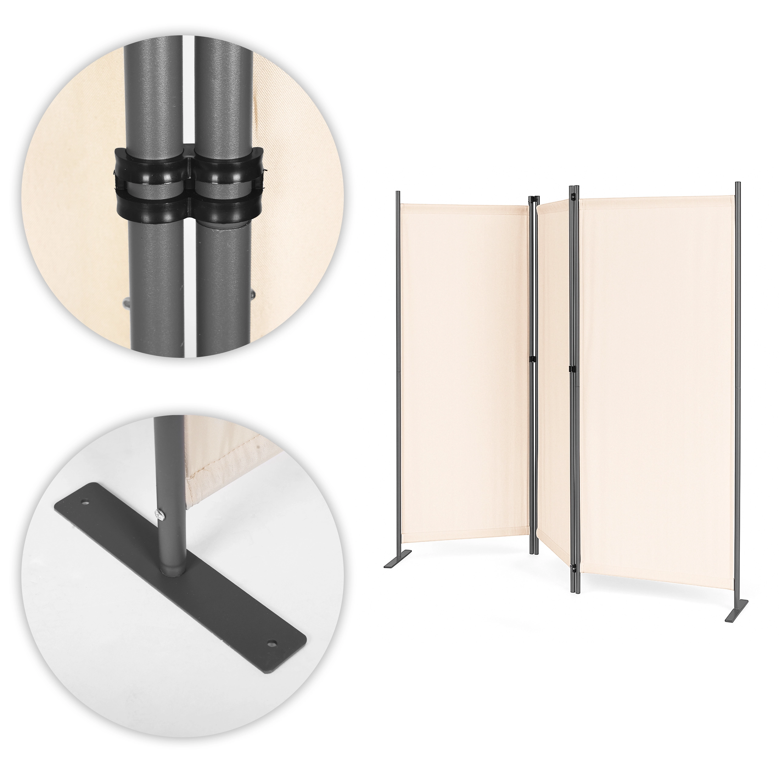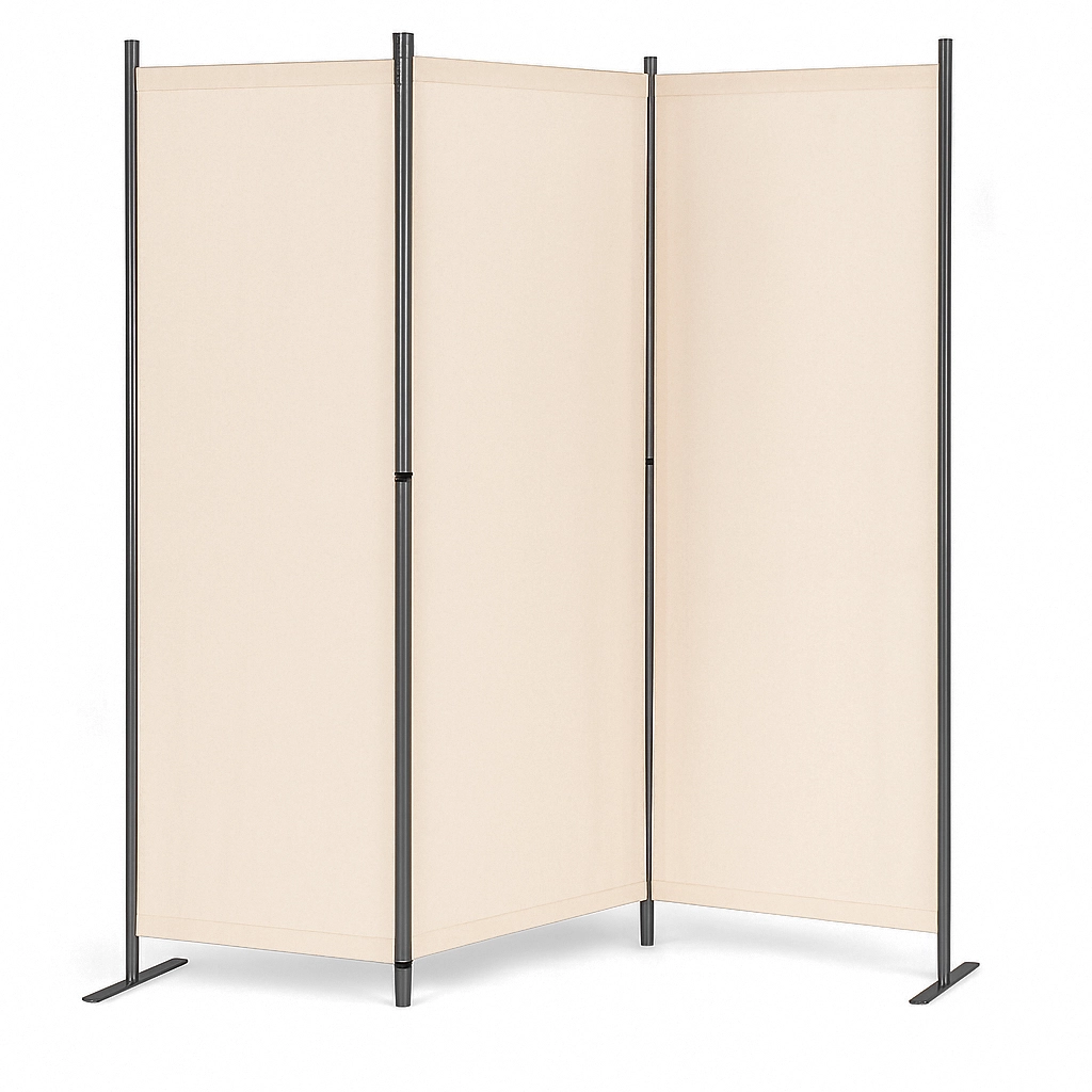 Conectori solizi ai panourilor permit pliarea și desfășurarea ușoară a paravanului. Baza metalică stabilă are deschideri de montaj practice pentru fixarea suplimentară a paravanului de sol. Datorită suportului larg, distribuția greutății este uniformă și prevenirea răsturnării este asigurată, chiar și pe suprafețe inegale. Accesoriile de montaj măresc stabilitatea și siguranța utilizatorilor, asigurând că paravanul rămâne stabil chiar și în condiții de vânt.