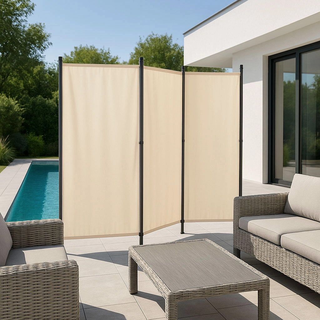 Paravanul pliabil de grădină MultiGarden este o soluție universală pentru protejarea și decorarea spațiilor exterioare. Se potrivește excelent în grădină, pe terasă sau pe balcon, unde oferă intimitate și protecție împotriva vântului și în același timp servește ca divizor de spațiu. Datorită utilizării poliesterului durabil de 160 g/m², paravanul este rezistent la radiații UV și ploaie. Cu un design ușor și pliabil, îl puteți muta și ajusta cu ușurință conform necesităților. Eleganța în culoarea bej conferă stil și îmbunătățește impresia estetică.