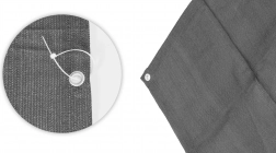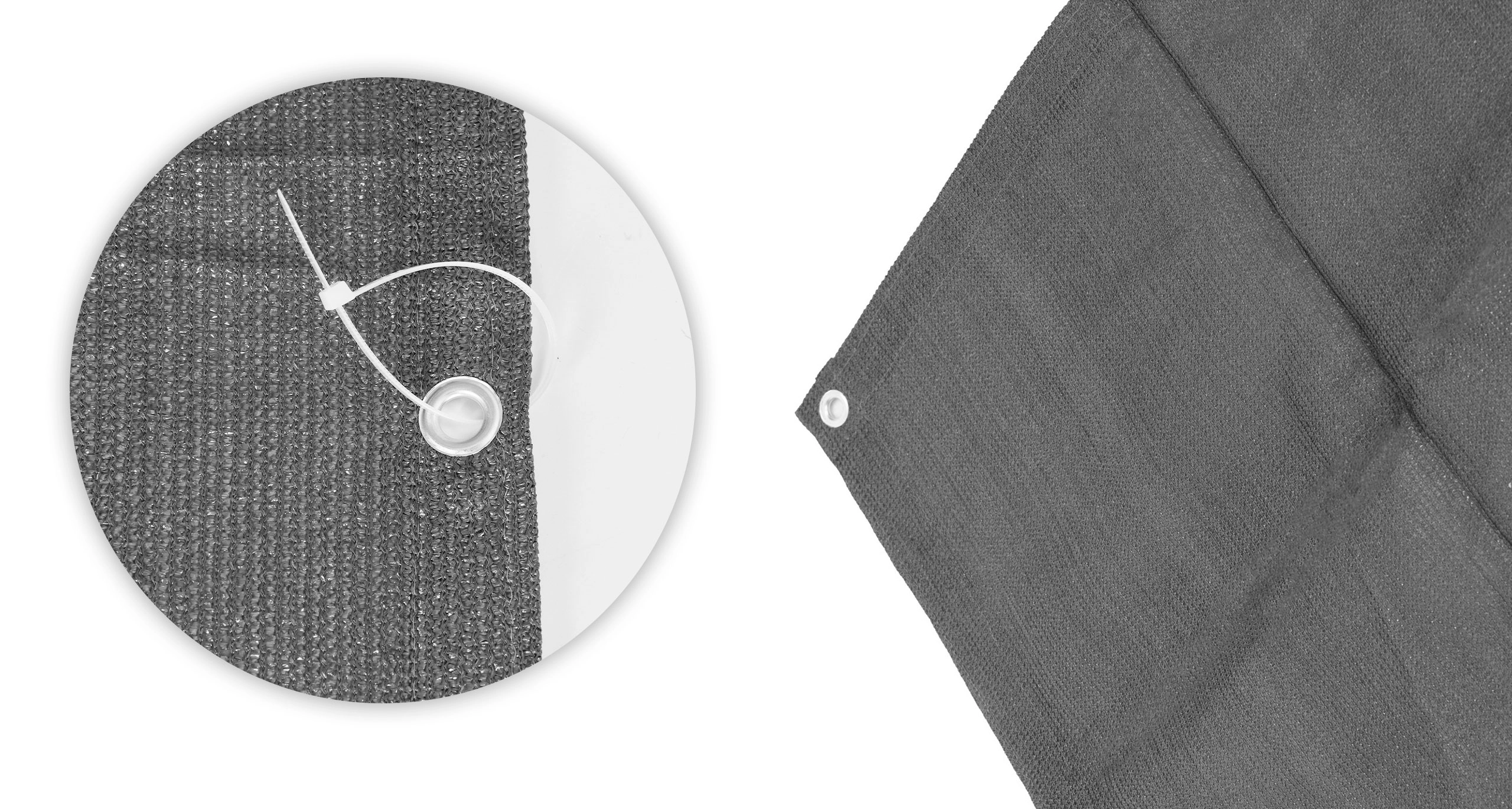 Materialul țesăturii este realizat din material HDPE rezistent cunoscut pentru rezistența sa mare la deteriorarea mecanică și radiații UV, astfel încât își păstrează culoarea vie, în ciuda expunerii îndelungate la soare. Materialul nu absoarbe umezeala, fiind rezistent la mucegai, deformări și condiții meteorologice schimbătoare. Structura ușoară, dar solidă a grilei umbrește eficient spațiul, permițând în același timp fluxul liber al aerului.