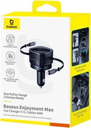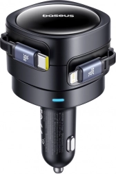 Încărcătorul auto Baseus oferă încărcare puternică și sigură datorită celor două cabluri integrate, USB-C și Lightning, fiecare capabil să gestioneze până la 30W. Este compatibil cu tensiunea de 12-24 V, făcându-l ideal pentru vehicule personale, SUV-uri și camioane.