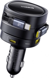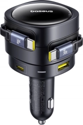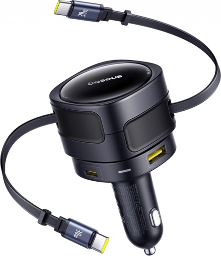 Acest încărcător inteligent oferă posibilitatea de a încărca dispozitivele confortabil fără cabluri încâlcite datorită mecanismului rotativ de 1806. Cablurile sale duale de 80 cm lungime se retrag automat, minimizând dezordinea din mașina dvs.