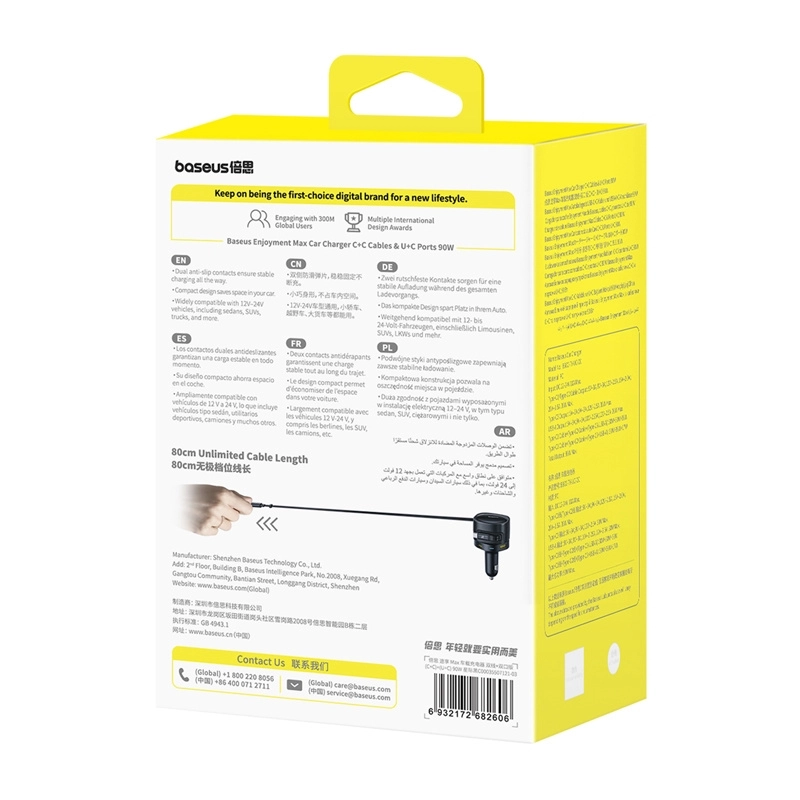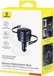 Baseus Enjoyment Max este alegerea ideală pentru cei care au nevoie să încarce mai multe dispozitive în mișcare. Cu o putere totală de până la 90 watts și mai multe porturi, garantează încărcare rapidă și eficientă. Designul compact și stilat al încărcătorului permite depozitare și transport ușor.