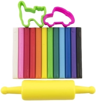 - 12 piese de plastilină, 2 forme de tăiere, 1 cilindru