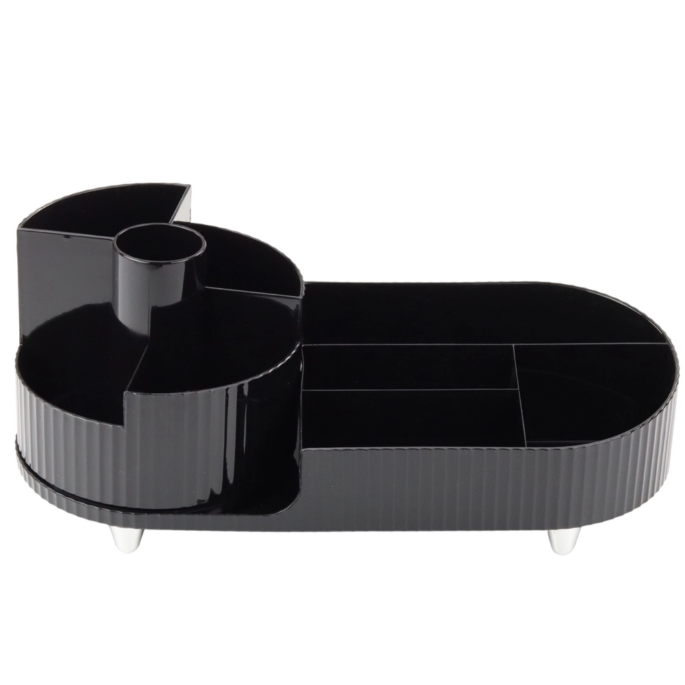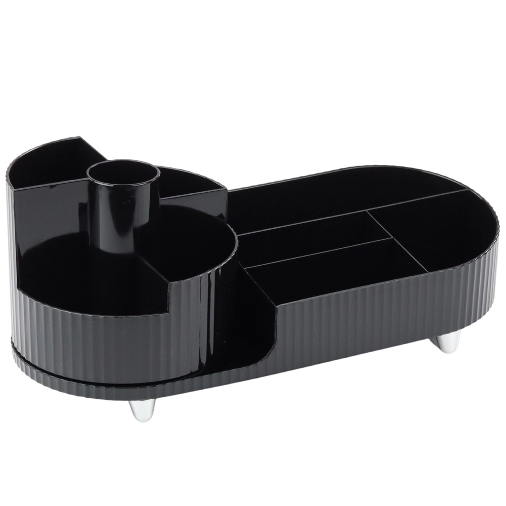 Acest organizator este echipat cu un mecanism rotativ de 360°, care asigură accesul rapid și ușor la conținut. Este ideal pentru depozitarea pensulelor de machiaj, rujurilor, corectoarelor sau sticluțelor de parfum. De asemenea, poate servi ca organizator pentru creioane, foarfece, evidențiatoare sau alte obiecte de papetărie mică.