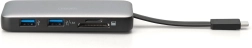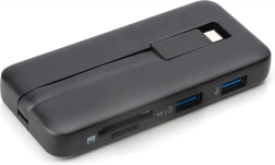 Sunt disponibile, de asemenea, două cititoare de carduri (SD/MicroSD) cu o viteză de transfer de 104 MBps. Stația suportă USB-C Power Delivery 3.0, ceea ce permite reîncărcarea laptopului iar datorită Fast Role Swap (FRS) nu este întrerupt fluxul de date între stație și laptop atunci când deconectați încărcătorul.