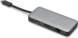 Această stație de andocare permite conectarea ușoară a laptopului la o gamă largă de dispozitive. Cu portul HDMI puteți conecta un alt monitor extern, extinzându-vă spațiul de lucru. Două porturi rapide USB-A 3.2 Gen 1 permit transferul de date la o viteză de 5 Gbit/s, dintre care unul oferă și încărcare pentru dispozitive mobile. Conexiunea la rețea este asigurată de portul Ethernet gigabit (RJ45), care garantează o conexiune stabilă la internet.