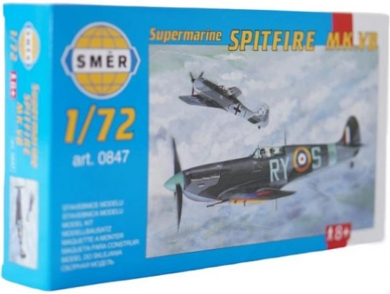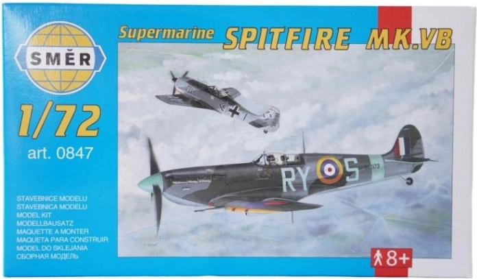 Model Supermarine Spitfire Mk.Vb 1:72 - machetă detaliată pentru pasionații de modelism și istorie militară, cu 43 de piese, lungime 12,8 cm, anvergură aripi 13,6 cm.