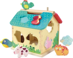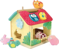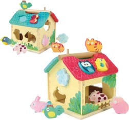 Această căsuță colorată cu forme este excelentă pentru dezvoltarea abilităților esențiale: copiii exersează coordonarea mână–ochi, gândirea logică și răbdarea. Setul include 1 căsuță și 10 animăluțe din lemn – combinația perfectă pentru un joc plin de sens și bucurie.