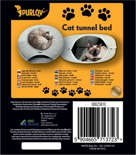 Tunel pentru pisici PURLOV este alegerea ideală pentru orice proprietar de pisică care dorește să ofere animalului său de companie un loc confortabil și primitor. Designul ergonomic și materialul moale din fetru asigură că pisica ta se va simți ca într-un regat propriu.