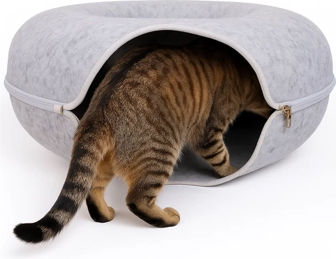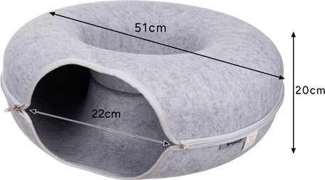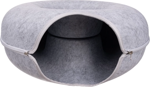 Tunel confortabil pentru pisici PURLOV, lavabil și modern, fabricat din fetru natural. Refugiu ideal pentru animalele tale de companie.