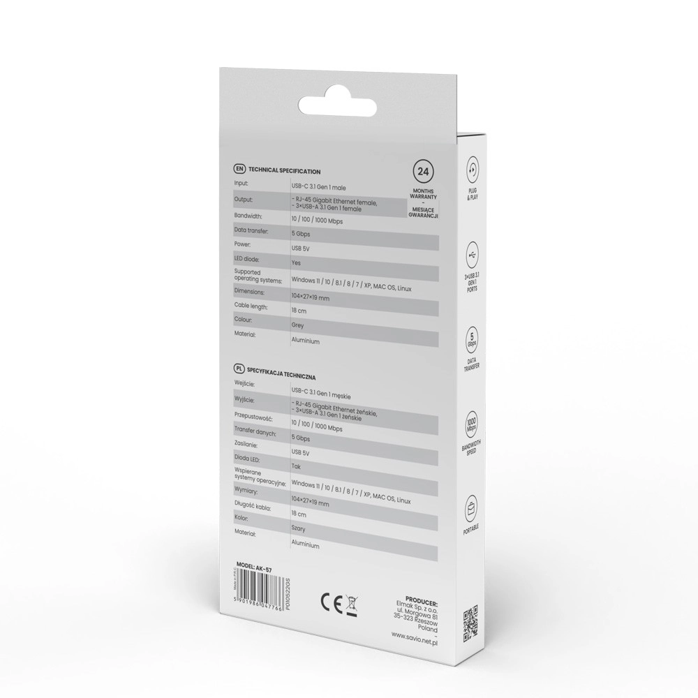Hub Savio este partenerul ideal pentru laptopuri și calculatoare desktop cu un număr redus de porturi USB-A. Conectați până la trei dispozitive periferice suplimentare, cum ar fi discuri externe, tastaturi sau mouse-uri, și bucurați-vă de o conexiune rapidă și ușoară.
