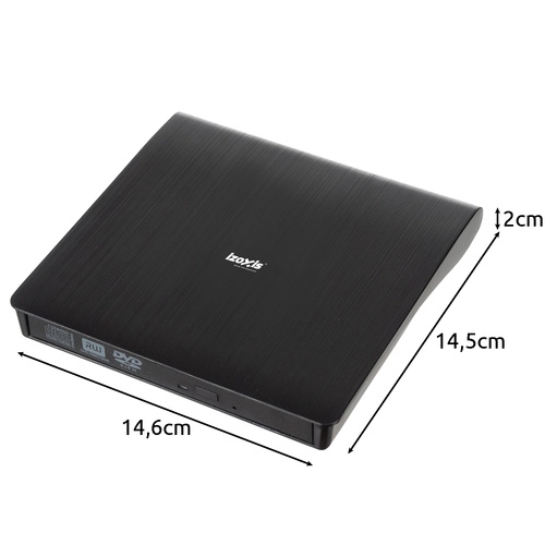 Conectare și utilizare ușoară! Unitatea externă DVD/CD IZOXIS oferă o soluție simplă și fiabilă pentru citirea și inscripționarea discurilor CD și DVD fără a fi necesară instalarea de drivere. Complet compatibilă cu Windows, Mac OS și Linux.