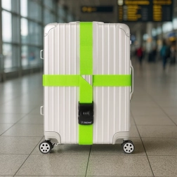 Nu doar că această curea oferă o opțiune practică de fixare „în cruciș”, dar și datorită designului său verde aprins vă permite să vă identificați ușor bagajul pe banda de bagaje.