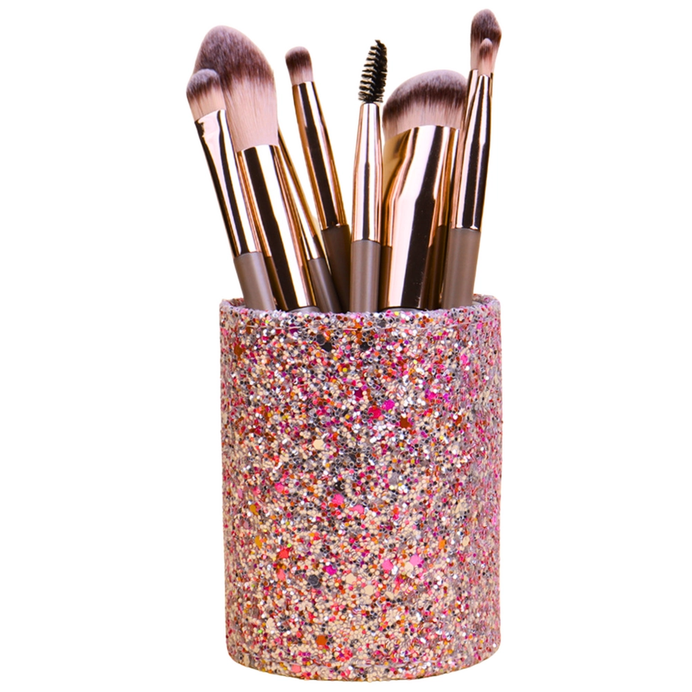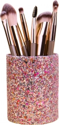 Fabricat dintr-un plastic durabil și acoperit cu brocart strălucitor, acest pahar este o soluție captivantă și elegantă. Este ideal pentru păstrarea pensulelor de machiaj, a creioanelor de ochi, a rimelurilor, a contururilor și a altor mici accesorii cosmetice.