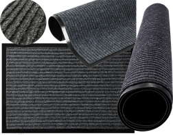 Acest covoraș gri cauciucat este proiectat pentru utilizare zilnică în apartamente, birouri și spații comerciale. Cauciucul antiderapant asigură stabilitate pe diverse tipuri de pardoseli, iar fibrele sintetice rezistente cu structură striată îndepărtează în mod fiabil nisipul, praful și umezeala de pe încălțăminte.