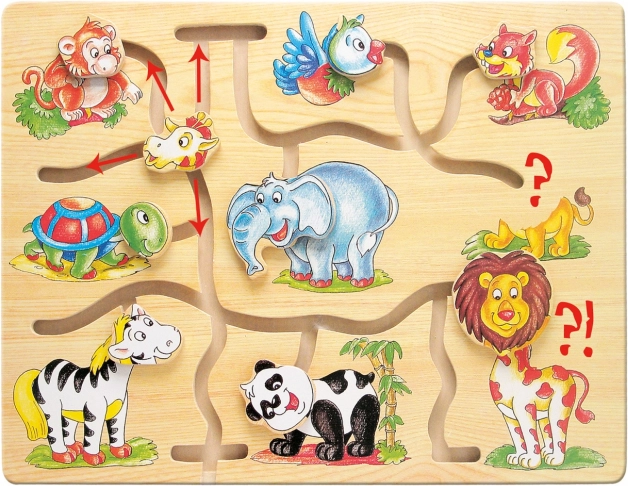 Labirintul din lemn cu animale este un instrument ideal pentru dezvoltarea abilităților copiilor încă de la vârste fragede. Datorită motivelor colorate și pieselor mobile, copiii înțeleg ușor cum să potrivească capul corect cu corpul animalului și își exersează în același timp coordonarea mână–ochi.