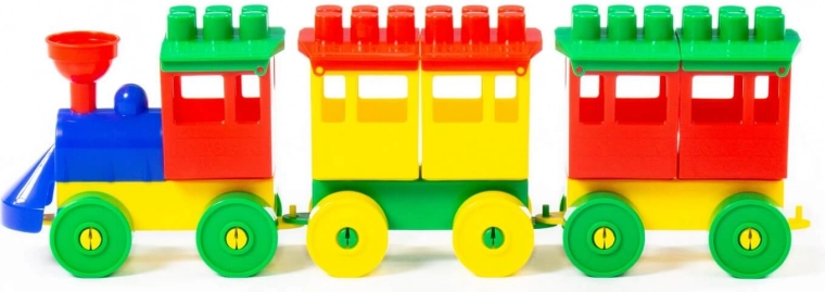 Set trenuleț din plastic colorat este ideal pentru copiii mici de la 3 ani în sus. Setul conține o locomotivă și două vagoane, permițându-le copiilor să dezvolte creativitatea și abilitățile motorii fine.