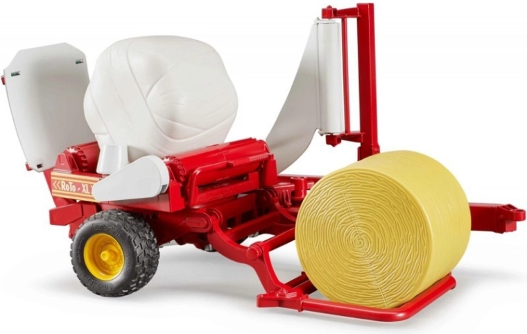 Construcția din plastic ABS de calitate asigură durabilitate, execuție precisă și funcționare lină a părților mobile. În pachet găsești doi baloți – alb și galben – iar înfoliatorul este compatibil cu baloții BRUDER BR12315 și BR02345.