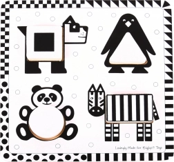 Motivele alb-negru cu animăluțe stimulează vederea și îi ajută pe copii să distingă mai bine formele și contururile.