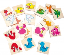 Descoperiți magia naturii cu Bino Pexeso din lemn Lumea acvatică. Acest produs se mândrește cu:< p>