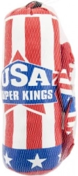 Acest set de box pentru copii este o alegere excelentă pentru primii pași în lumea boxului. Datorită dimensiunilor mai mici, se potrivește în camera copilului și pentru antrenamente acasă. Motivul colorat al steagului american îi atrage pe copii și îi motivează la mișcare.
