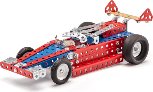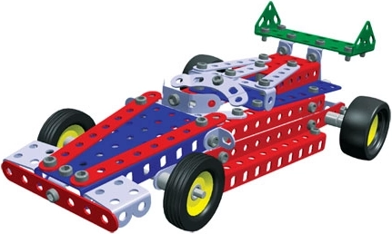 Acest kit de la marca Merkur oferă copiilor oportunitatea de a intra în lumea automobilelor de curse. Permite asamblarea a zece modele diferite din piese metalice și plastice de calitate. Jucăria este recomandată pentru copiii cu vârsta de peste 6 ani.