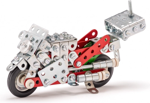 Setul de construcții Merkur Motocicletă oferă posibilitatea construirii a zece modele diferite de motociclete și alte vehicule. Cu acest set, copiii își dezvoltă creativitatea, gândirea logică și motricitatea fină. Fiecare model oferă o experiență nouă de construcție și permite distracție nelimitată.