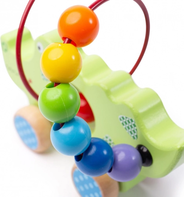Crocodilul din lemn cu labirint de mărgele este jucăria ideală pentru micii exploratori. Construcția sa colorată atrage atenția și îi învață pe copii coordonarea mișcărilor. Această jucărie este realizată din materiale de calitate și sigure, conform standardelor europene de siguranță. Efectul de rulment al roților asigură că crocodilul se mișcă ușor și copiii pot muta jucăria fără probleme.