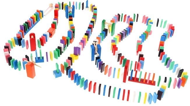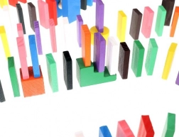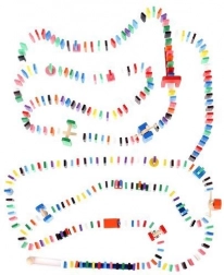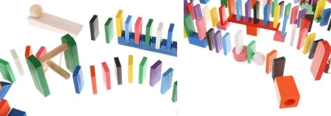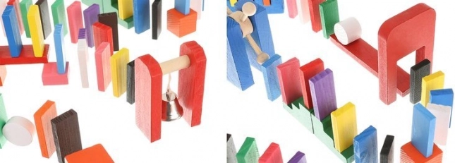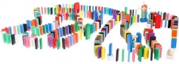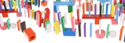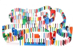 Setul este conceput pentru a stimula creativitatea copilului, permițând crearea diferitelor construcții precum animale, case, vehicule și multe altele. Setul include, de asemenea, numeroase elemente suplimentare care extind posibilitățile de aranjare. Printre acestea se numără, de exemplu, o balansoar, scări, o moară de vânt, poduri și câteva alte piese. Blocurile de domino din lemn sunt foarte rezistente și, mai presus de toate, sigure pentru copii! Fiecare cărămidă are margini rotunjite și este acoperită cu o vopsea specială care nu se transferă și nu conține substanțe toxice sau chimice.