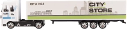 Acest camion cu semiremorcă, lucrat în detaliu, combină cabina metalică și piesele ușoare din plastic pentru manevrare facilă și rezistență la joacă. Datorită rulării libere pornește lin pe suprafețe netede și se potrivește de minune în orice colecție de mașinuțe.