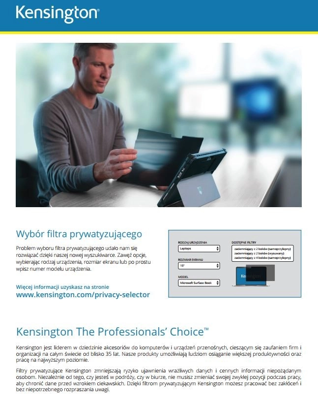 Filtrul de protecție este proiectat pentru a limita unghiul de vizibilitate la +/− 30 °, îngreunând vederea ecranului de către cei din lateral și protejează informațiile dumneavoastră personale sau confidențiale. Permite o instalare ușoară datorită suporturilor fără ramă sau a benzii adezive duble incluse.