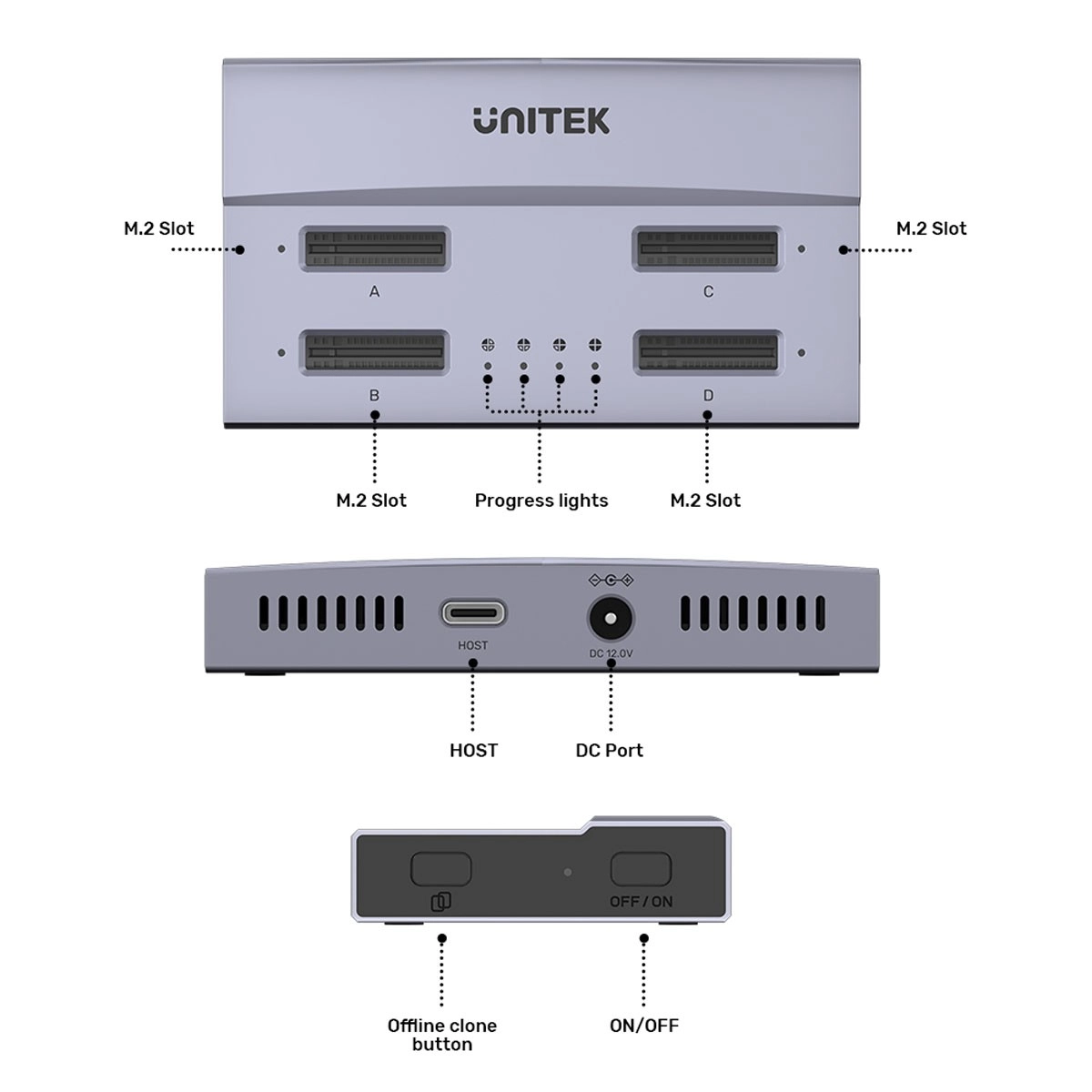 Conectivitate USB4 ultra-rapidă oferă o lățime de bandă de până la 40 Gb/s pentru copiere fulgerătoare și lucru cu fișiere mari, precum video 4K/8K sau fotografii RAW. Stația permite conectarea și gestionarea simultană a până la patru unități M.2 și, datorită suportului pentru NVMe și SATA, oferă flexibilitate maximă indiferent de tipul SSD-ului utilizat.