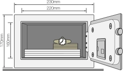 Dotările includ și două chei mecanice, care servesc ca soluție de urgență pentru deschiderea seifului fără a utiliza codul. Seiful este proiectat cu un indicator al nivelului scăzut de baterie, permițând astfel înlocuirea la timp a bateriilor și asigurând faptul că seiful va fi mereu complet funcțional.