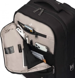 Compartimentul de protecție pentru notebook cu suport central în formă de V asigură că dispozitivul rămâne în siguranță pe loc și optim stabilit. Compartimentul frontal, cu buzunare organizate, păstrează accesoriile și lucrurile esențiale la locul lor, în timp ce spatele ergonomic, respirabil, oferă confort pe tot parcursul zilei.