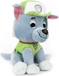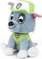 Personajul de pluș Rocky are detaliile sale caracteristice: vestă verde, șapcă cu insignă și o expresie prietenoasă. Suprafața catifelată te îmbie la îmbrățișat toată ziua și seara ajută la un somn liniștit. Un cadou grozav pentru orice copil care iubește PATRULA CĂȚEILOR.