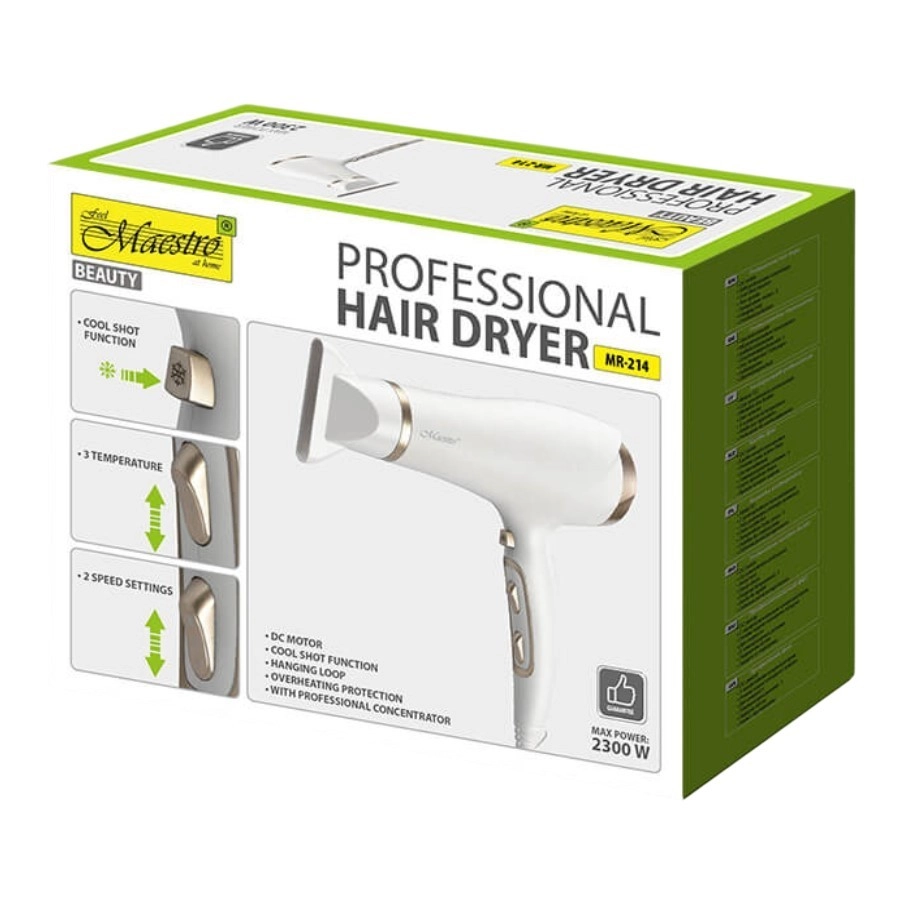 Fohnul este echipat cu un concentrator pentru a direcționa cu precizie fluxul de aer, ceea ce facilitează stilizarea precisă. Oferă 2 viteze de suflare și 3 setări de temperatură, care permit ajustarea performanței în funcție de nevoile individuale și de tipul de păr.
