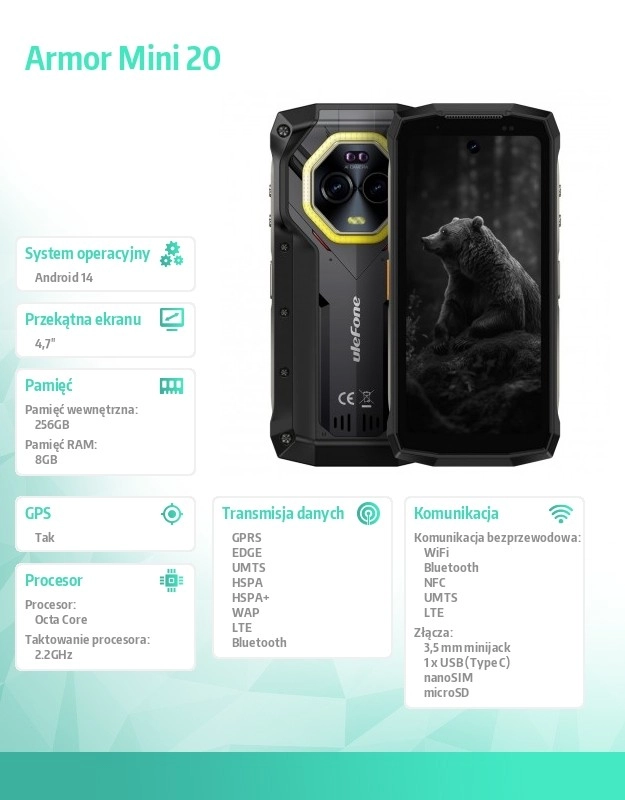 Construcția solidă a telefonului Ulefone Armor 20 îi asigură o durată lungă de viață chiar și în condiții extreme.