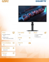 Monitorul Gigabyte G25F2 este creat pentru jucătorii care au nevoie de performanțe ridicate și reproducere precisă a culorilor. Datorită panoului IPS, asigură unghiuri largi de vizualizare și culori vii.