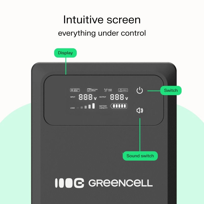 Dispozitivul are un afișaj LCD lizibil care informează despre starea și încărcarea bateriei. Comutatorul fizic de silențiere permite dezactivarea rapidă a alarmei sonore, iar siguranța înlocuibilă poate fi schimbată ușor fără a deschide carcasa.