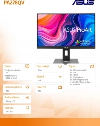 Monitorul ASUS ProArt PA278QV oferă o gamă largă de funcții concepute pentru a satisface nevoile profesioniștilor creativi: