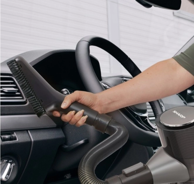Aspiratorul Sharp 2în1 este un dispozitiv inovator care combină funcțiile de curățare verticală și manuală. Echipat cu motor invertor fără senzori de 300 W și baterie Li-ion de 2000mAh, oferă până la 65 de minute de funcționare. Mânerul telescopic cu șapte setări de lungime (de la 890 la 1100 mm) asigură o adaptare confortabilă pentru utilizator, în timp ce poziția verticală facilitează depozitarea ușoară.