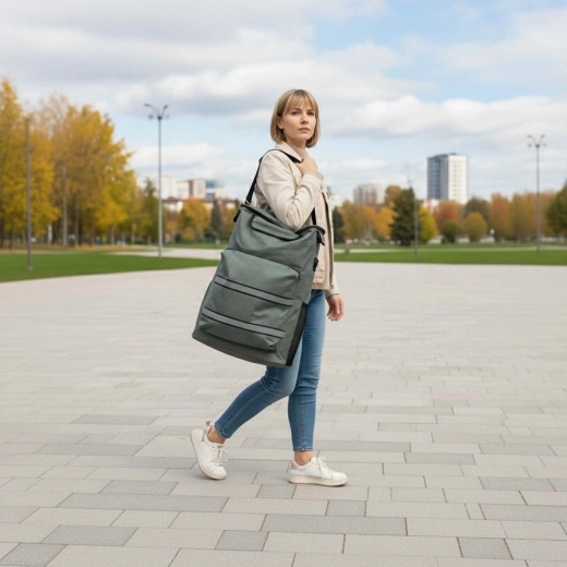 - Rezistență și siguranță: material hidrofug, elemente reflectorizante, sarcină maximă 30 kg.