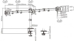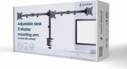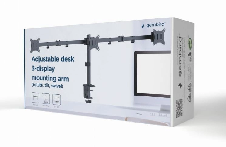 Ajustați confortabil monitoarele cu ajutorul unui suport de birou ajustabil pentru trei monitoare, care suportă monitoare de dimensiuni între 17 și 27 inch și o greutate de până la 7 kg.